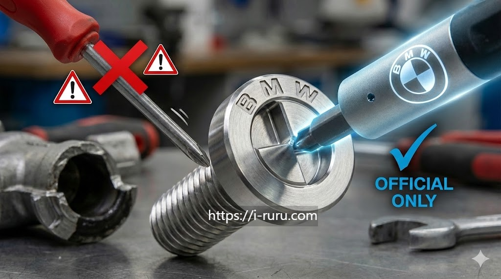 - 작동 원리: 일반 십자/일자 드라이버는 물론 육각 렌치도 들어가지 않습니다. 오직 BMW가 만든 '전용 2-Prong 도구'가 있어야만 풀고 조일 수 있습니다.
